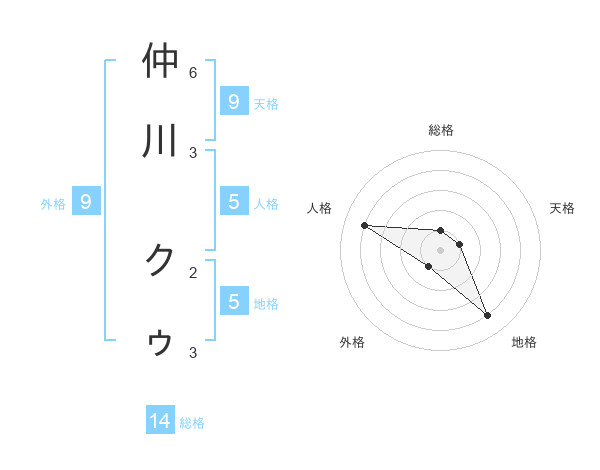 仲川 クゥさんを姓名の画数から五運を鑑定