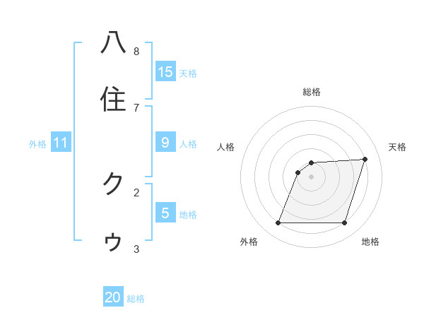 八住 クゥさんの総格は20画の1点!