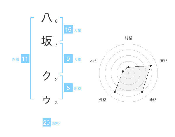 八坂 クゥさんの外格は11画の4点!