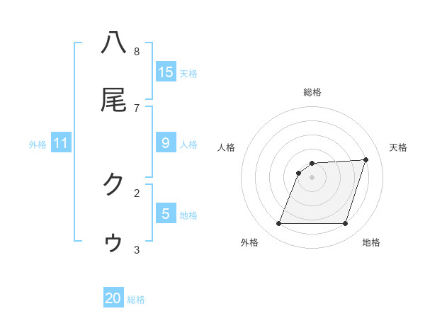 八尾 クゥさんを姓名の画数から五運を鑑定