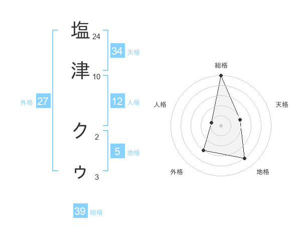 塩津 クゥさんを姓名の画数から五運を鑑定