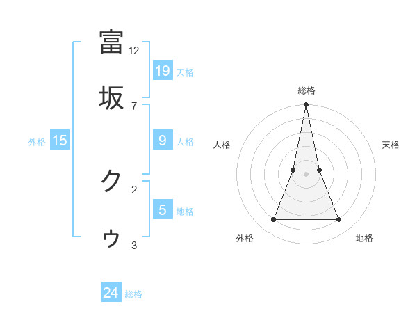富坂 クゥさんを姓名の画数から五運を鑑定