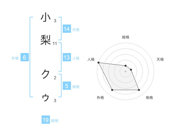 小梨 クゥさんを姓名の画数から五運を鑑定