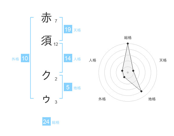 赤須 クゥさんの総格は24画の5点!