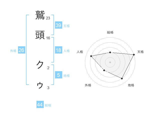 鷲頭 クゥさんを姓名の画数から五運を鑑定