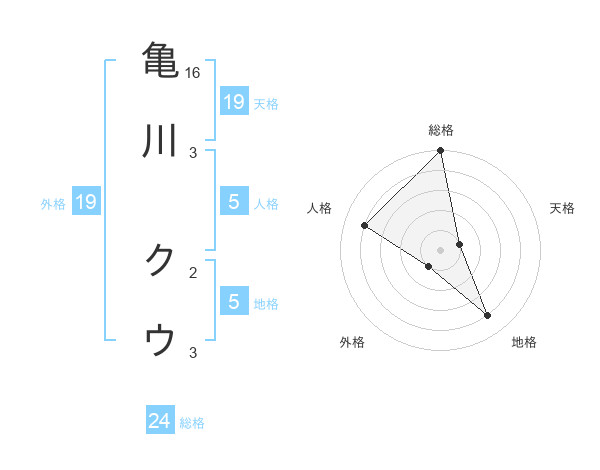 亀川 クウさんの総格は24画の5点!