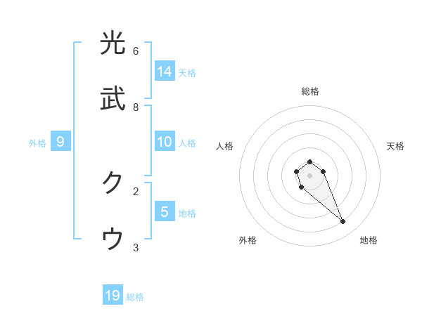 光武 クウさんの地格は5画の4点!