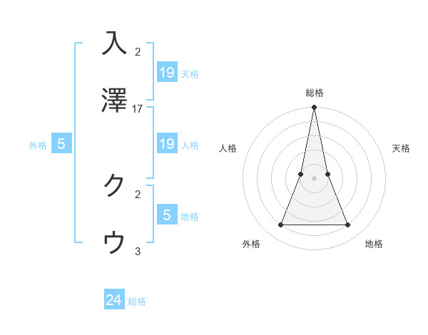 入澤 クウさんの総格は24画の5点!