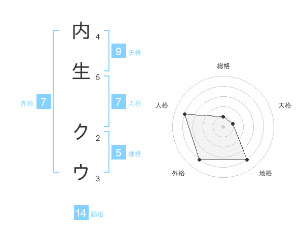内生 クウさんの地格は5画の4点!
