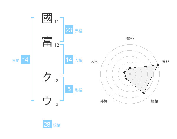 國富 クウさんの天格は23画の5点!