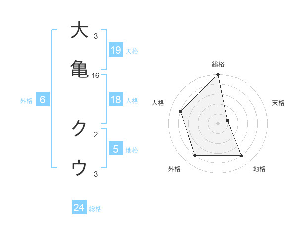 大亀 クウさんの総格は24画の5点!