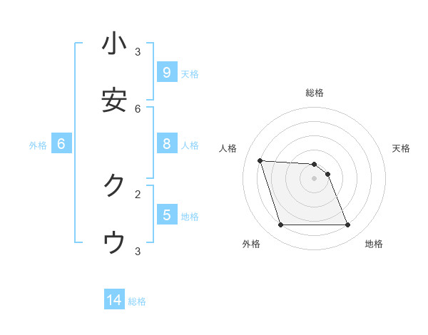 小安 クウさんの外格は6画の4点!
