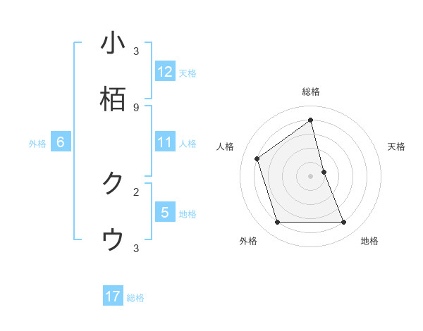 小栢 クウさんの総格は17画の4点!