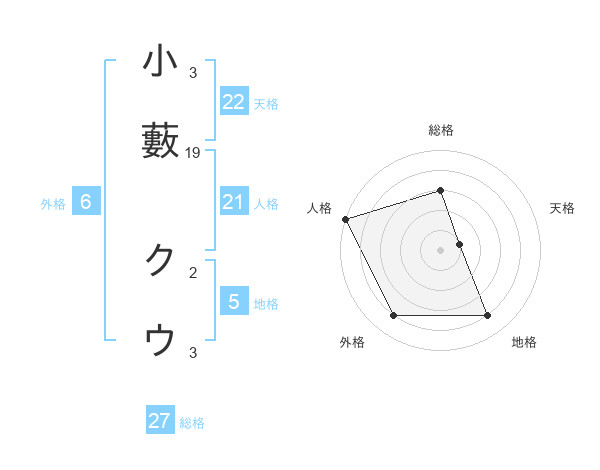 小藪 クウさんの天格は22画の1点!