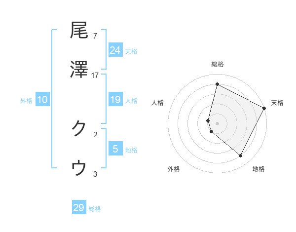 尾澤 クウさんの総格は29画の4点!
