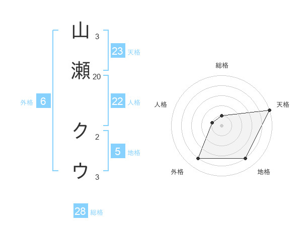 山瀬 クウさんを姓名の画数から五運を鑑定
