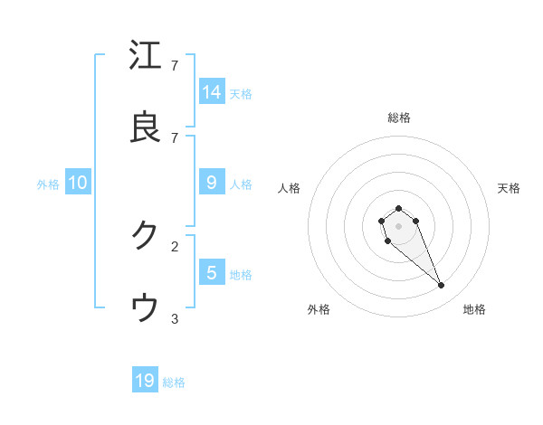 江良 クウさんの地格は5画の4点!