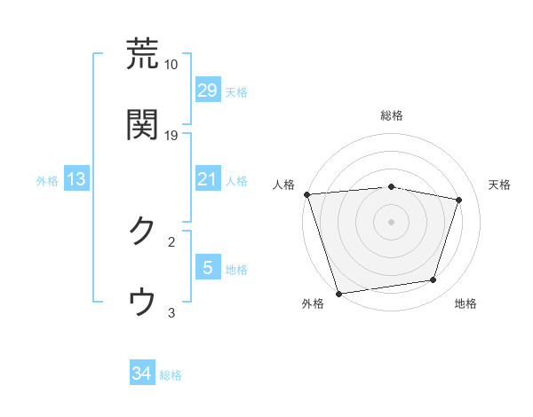 荒関 クウさんの外格は13画の5点!