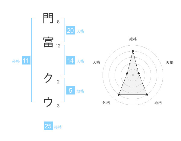 家系が持つ宿命的な運勢を表します。祖先から受け継いだ苗字ですので自分の力が及びません。家柄を象徴します。