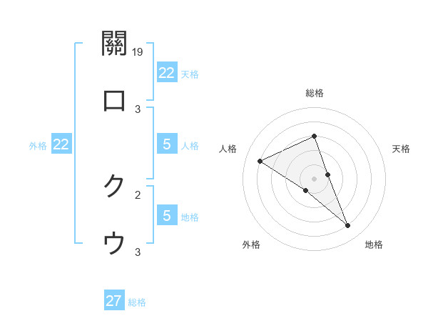 關口 クウさんの外格は22画の1点!
