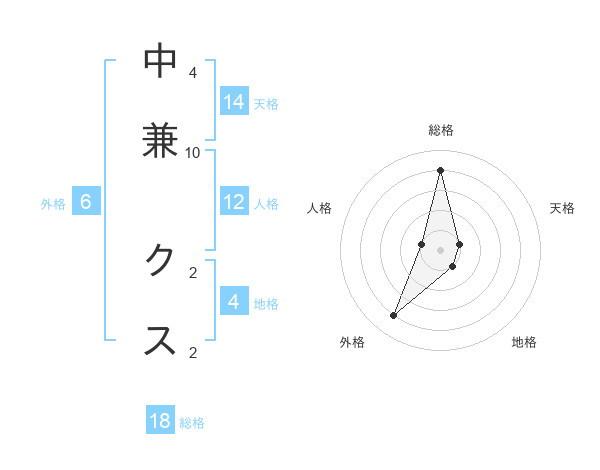 中兼 クスさんの総格は18画の4点!