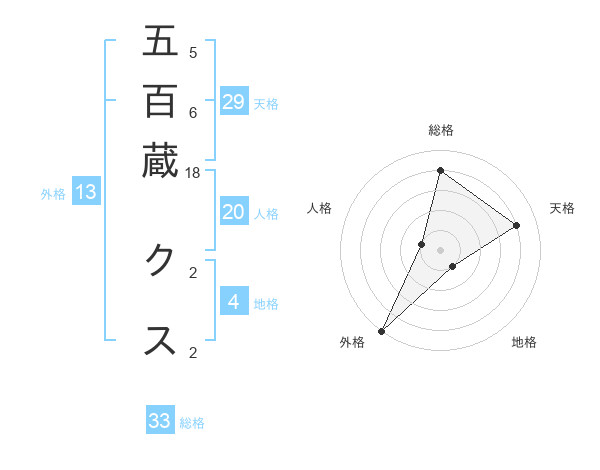 五百蔵 クスさんの総格は33画の4点!