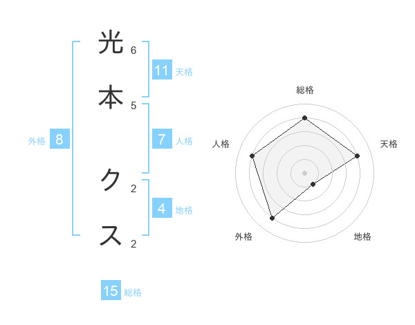 家系が持つ宿命的な運勢を表します。祖先から受け継いだ苗字ですので自分の力が及びません。家柄を象徴します。