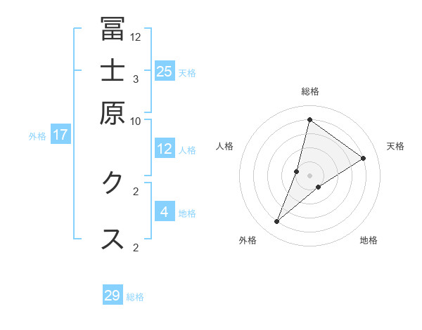 冨士原 クスさんの総格は29画の4点!