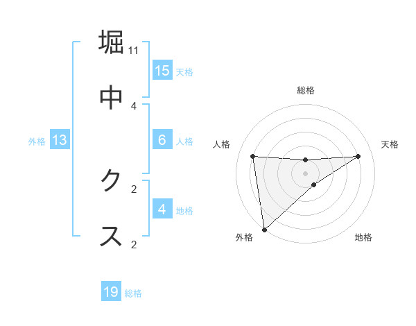 堀中 クスさんの外格は13画の5点!
