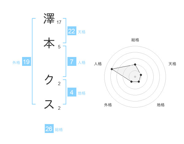 家系が持つ宿命的な運勢を表します。祖先から受け継いだ苗字ですので自分の力が及びません。家柄を象徴します。