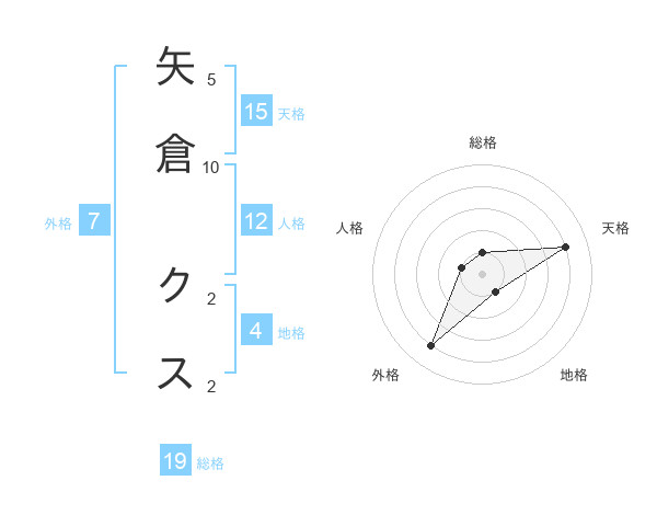 矢倉 クスさんの天格は15画の4点!