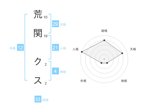 荒関 クスさんの天格は29画の4点!