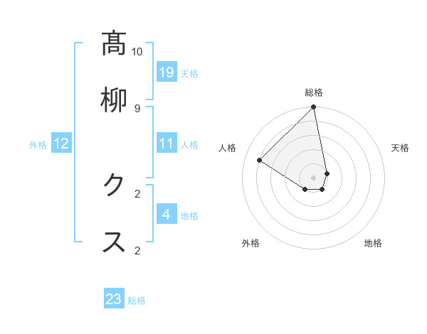 髙柳 クスさんの総格は23画の5点!