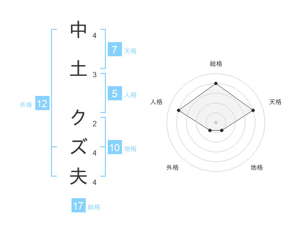 中土 クズ夫さんを姓名の画数から五運を鑑定