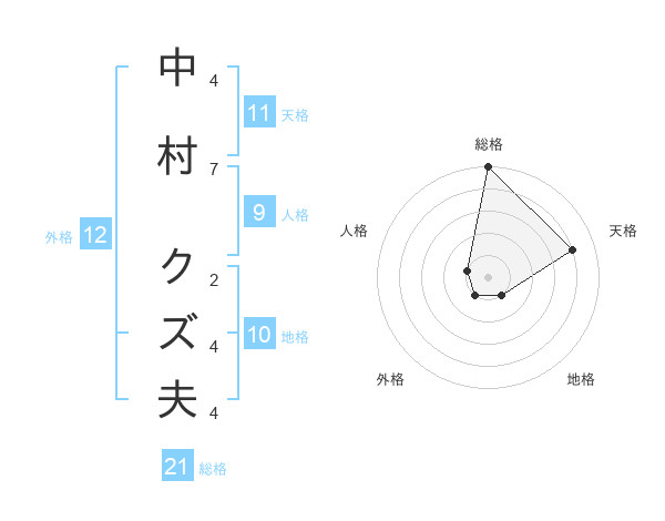 中村 クズ夫さんの天格は11画の4点