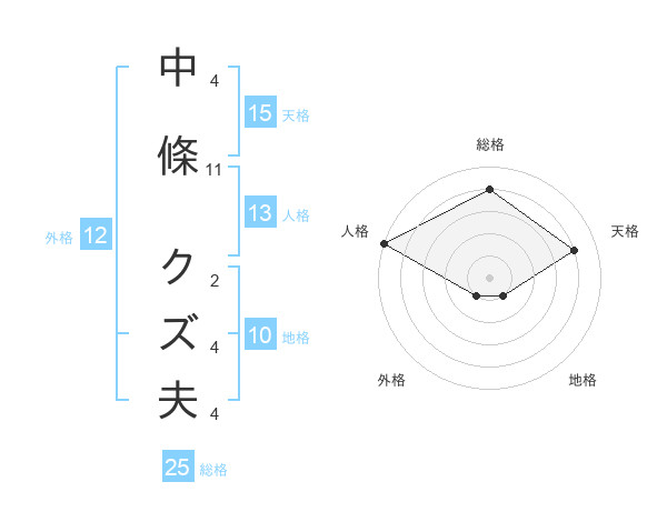 中條 クズ夫さんを姓名の画数から五運を鑑定