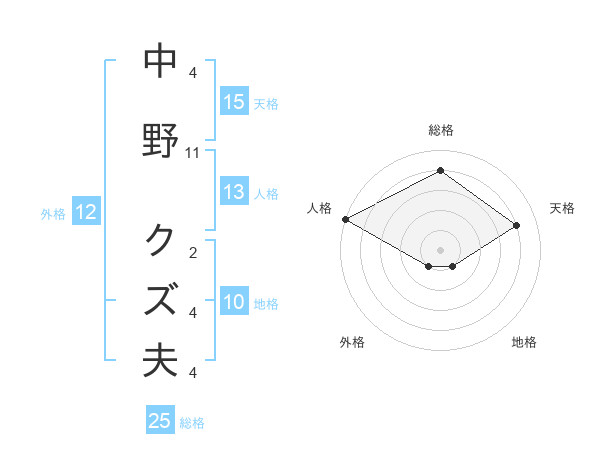 中野 クズ夫さんを姓名の画数から五運を鑑定