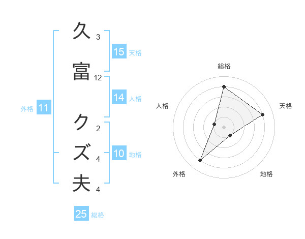 久富 クズ夫さんの天格は15画の4点!
