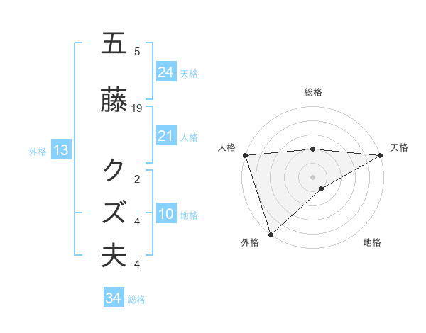 五藤 クズ夫さんの天格は24画の5点!