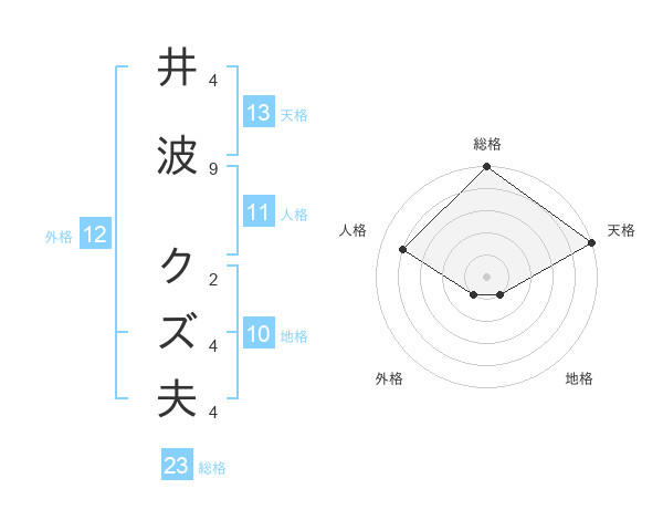 井波 クズ夫さんの天格は13画の5点!