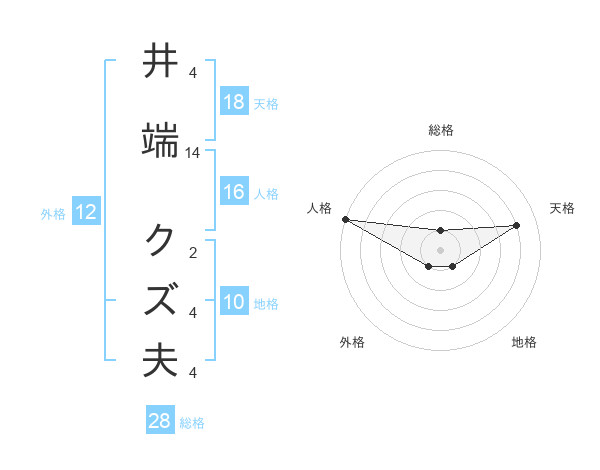 井端 クズ夫さんの天格は18画の4点!
