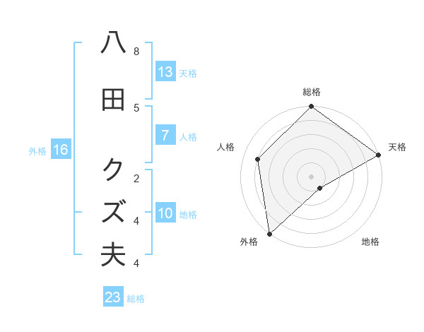 八田 クズ夫さんを姓名の画数から五運を鑑定