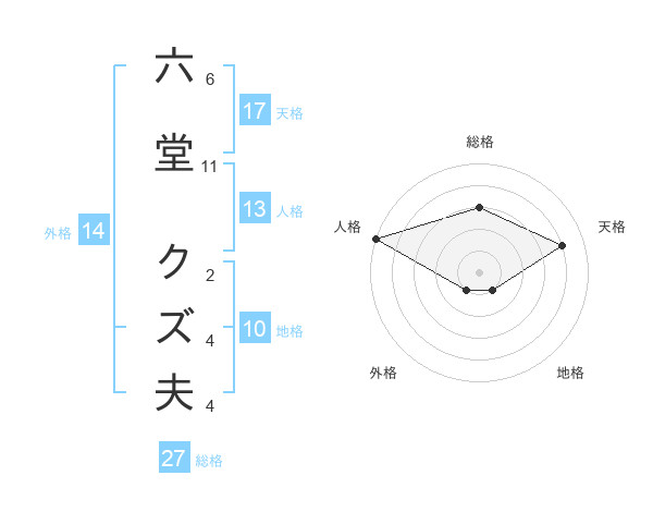 六堂 クズ夫さんの天格は17画の4点
