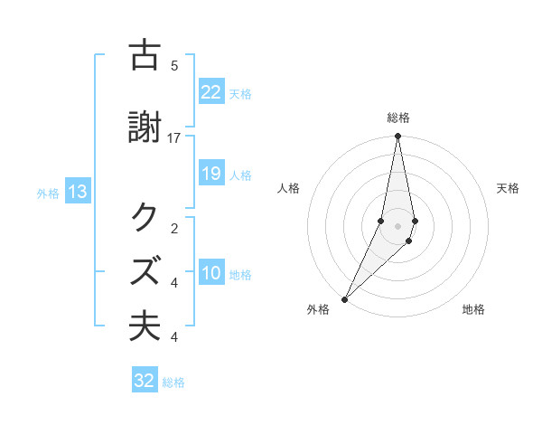 古謝 クズ夫さんを姓名の画数から五運を鑑定