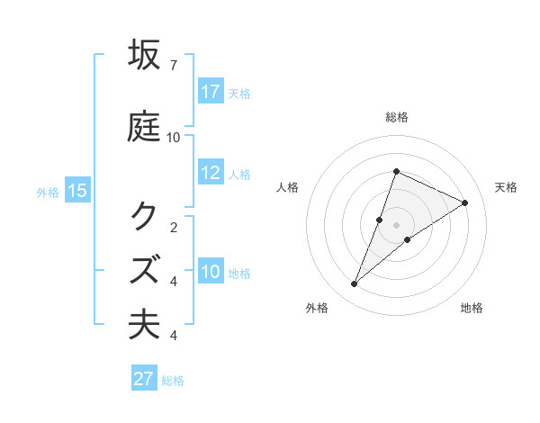 坂庭 クズ夫さんの天格は17画の4点!