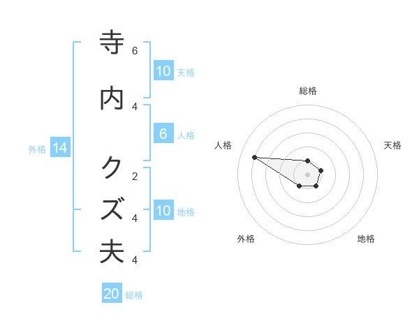 寺内 クズ夫さんの総格は20画の1点!