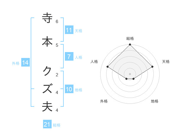 寺本 クズ夫さんを姓名の画数から五運を鑑定