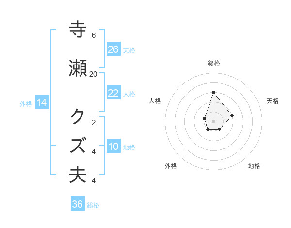 寺瀬 クズ夫さんを姓名の画数から五運を鑑定