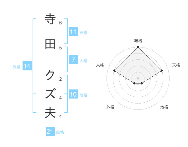 寺田 クズ夫さんを姓名の画数から五運を鑑定