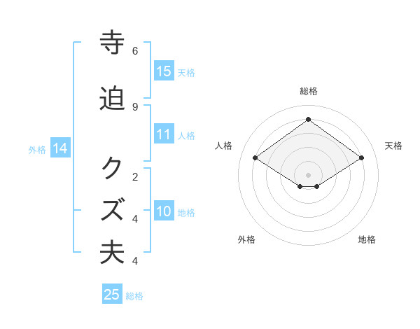 寺迫 クズ夫さんの天格は15画の4点!